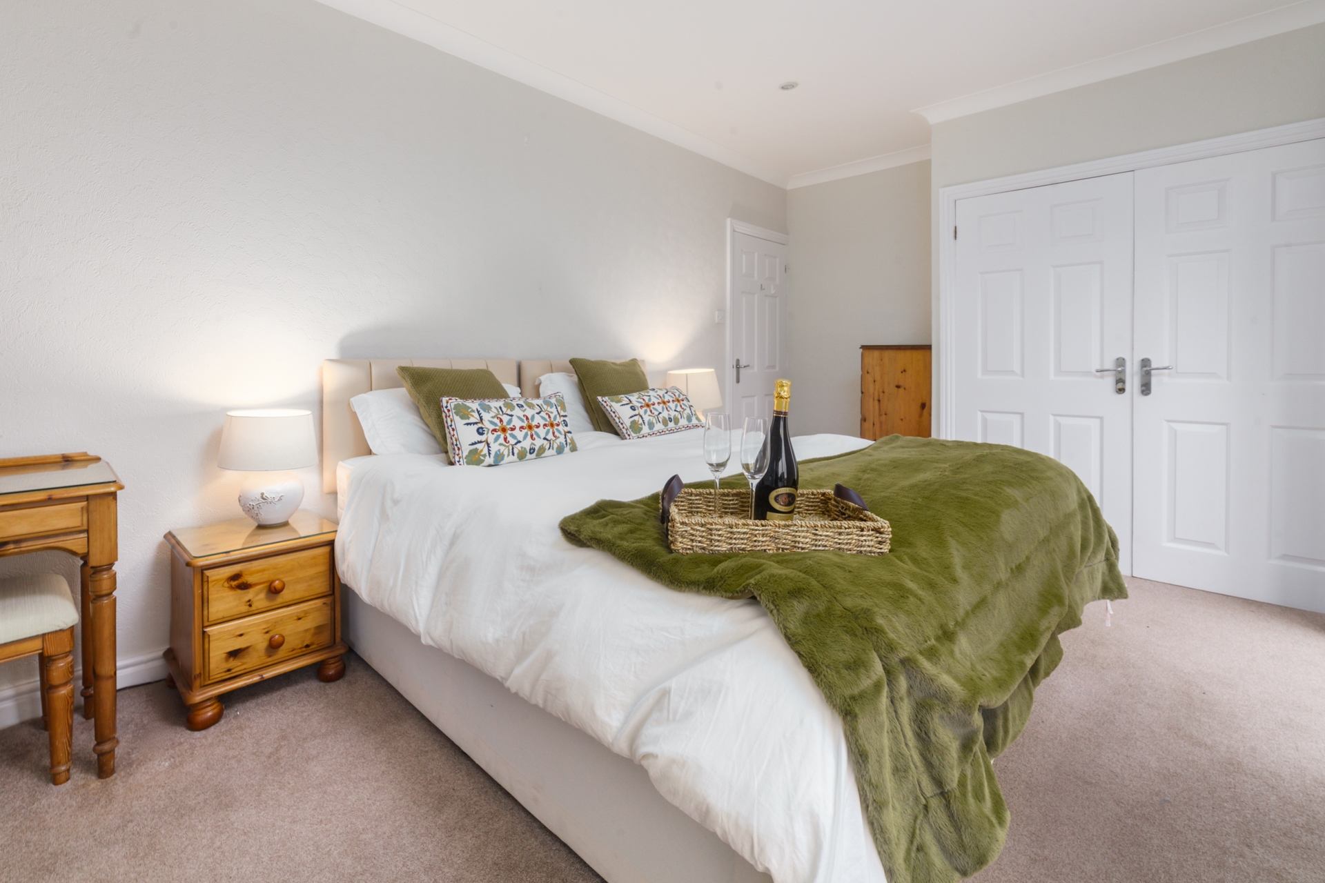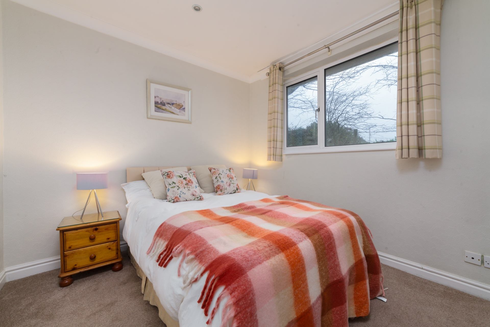 Bedroom 2: Standard double, bedside tables, wardrobe.
