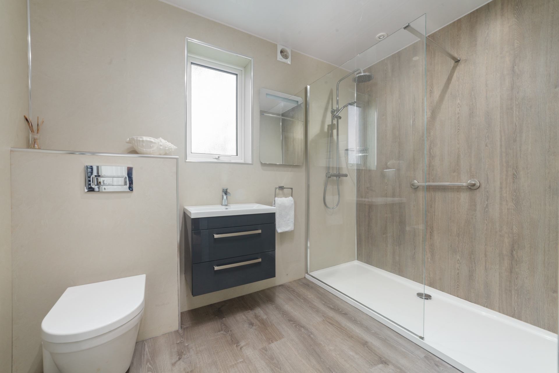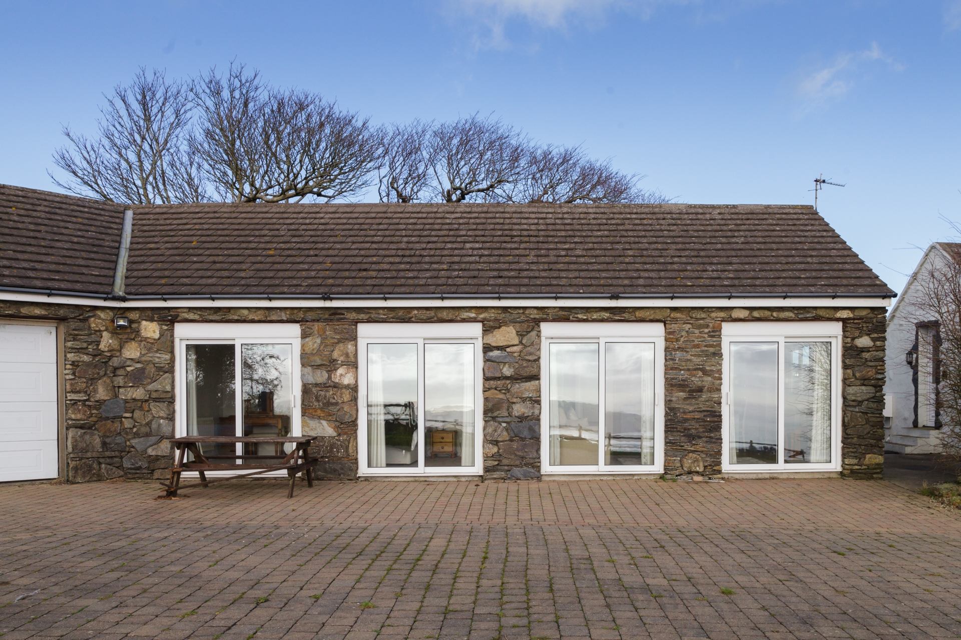 Large patio-style doors flood the generous open-plan living, dining, and kitchen area with natural light and frame beautiful views over the Manx countryside. The flexible bedroom features a super-king bed that can also be arranged as a twin, while a separate modern shower room completes the accommodation.