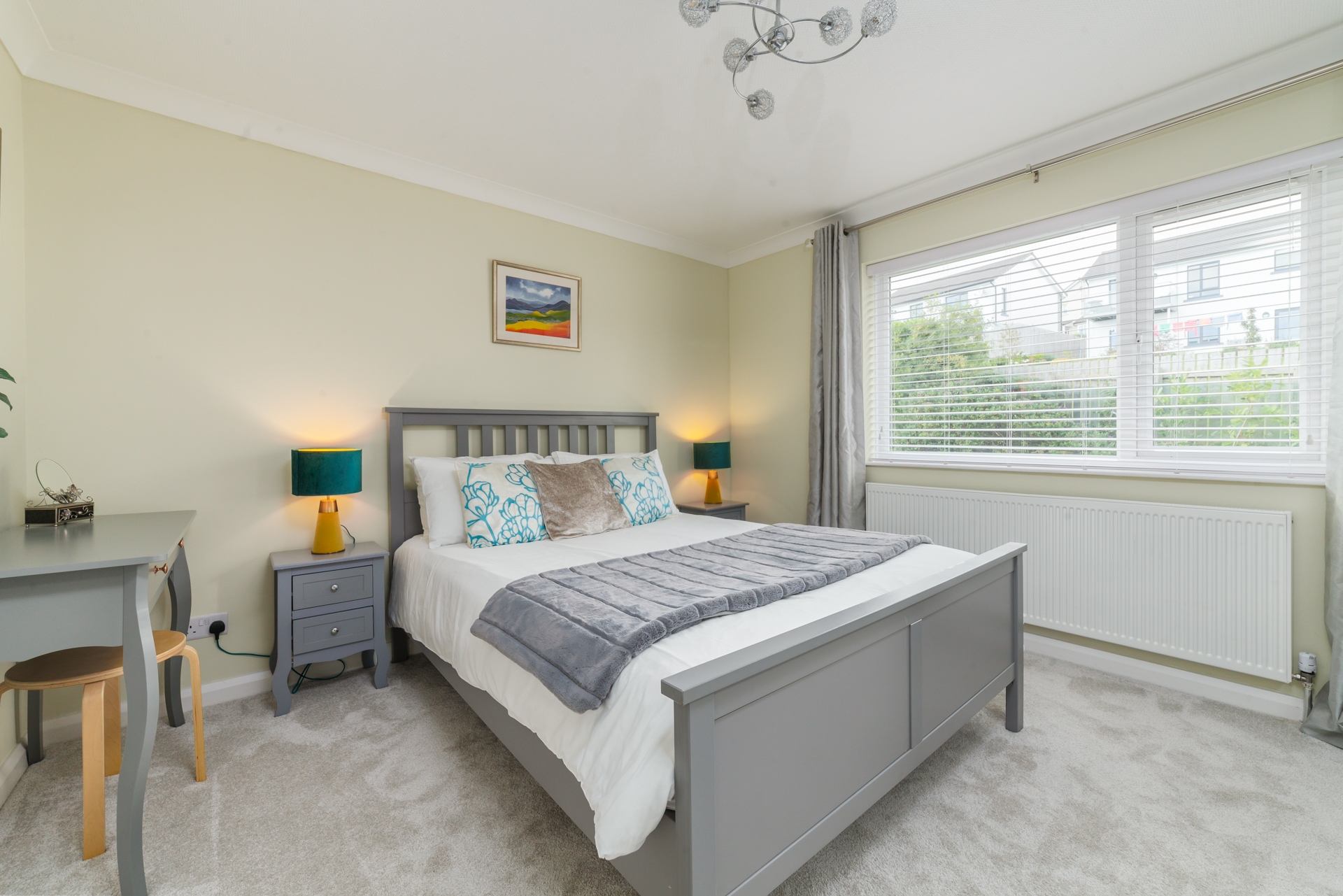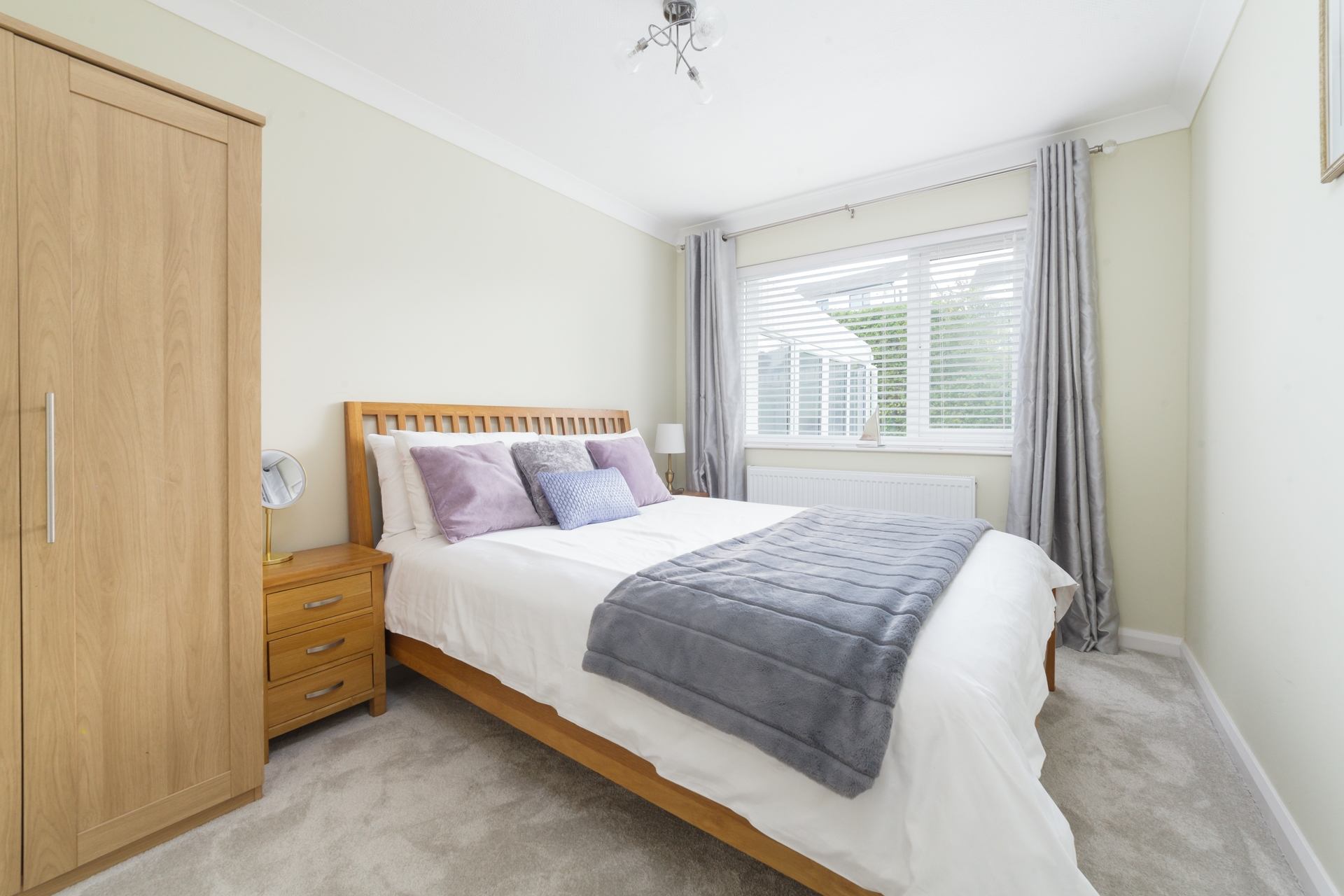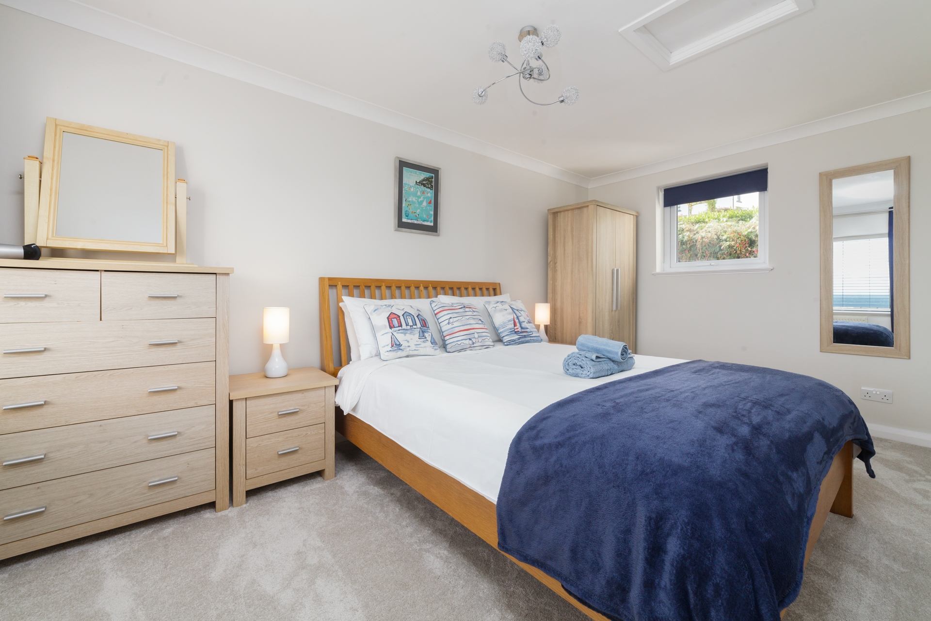 Bedroom 1: King size bed, wardrobe, bedside tables and chest of drawers.