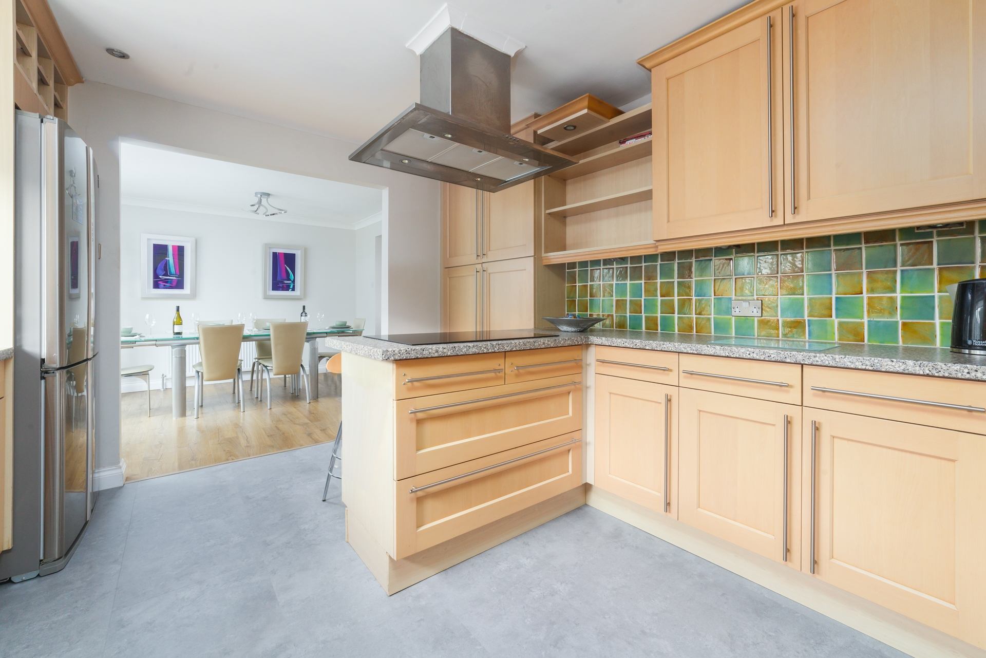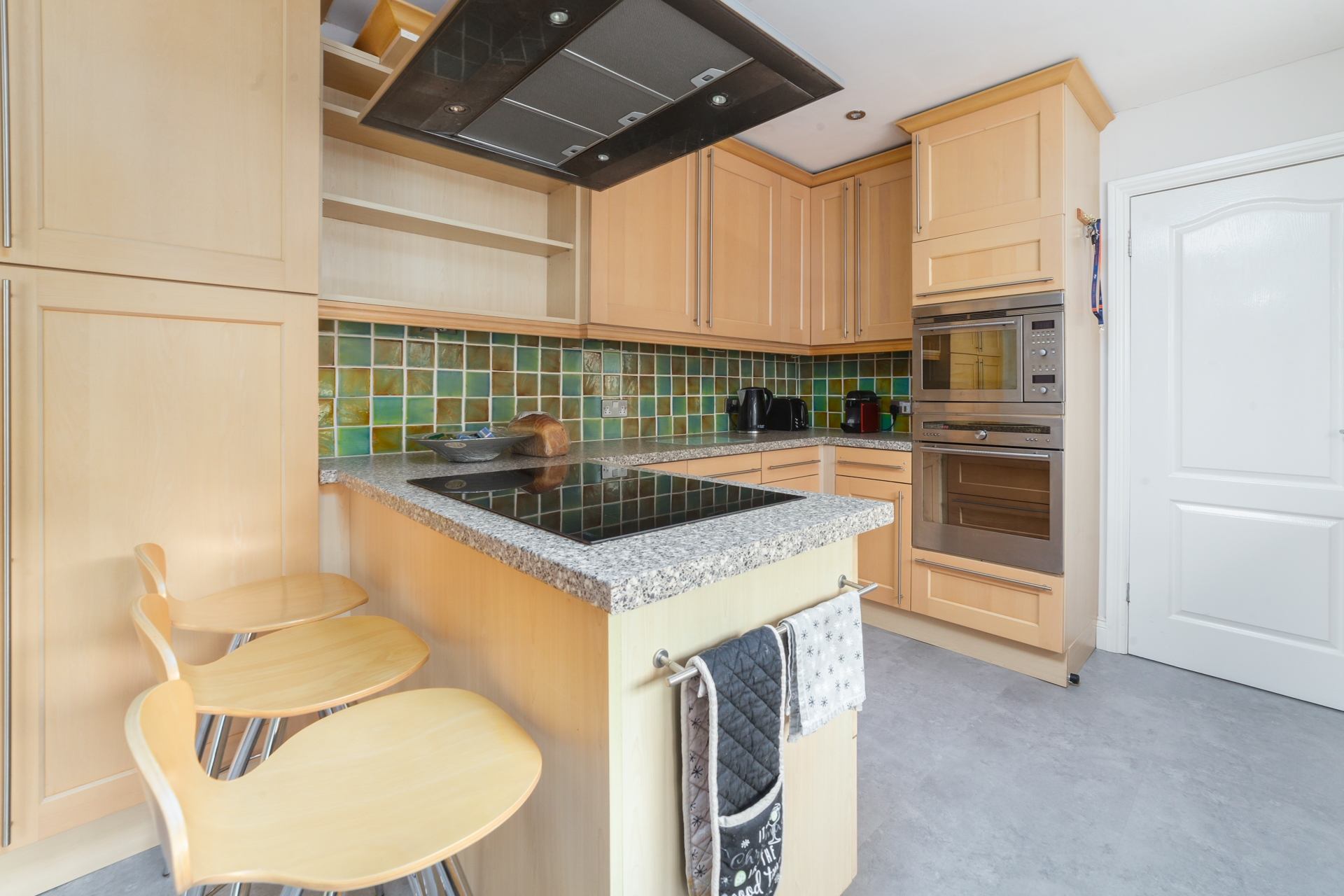 Kitchen: Well-equipped kitchen with oven, hob, fridge, freezer, microwave, dishwasher and breakfast bar with 3 stools.