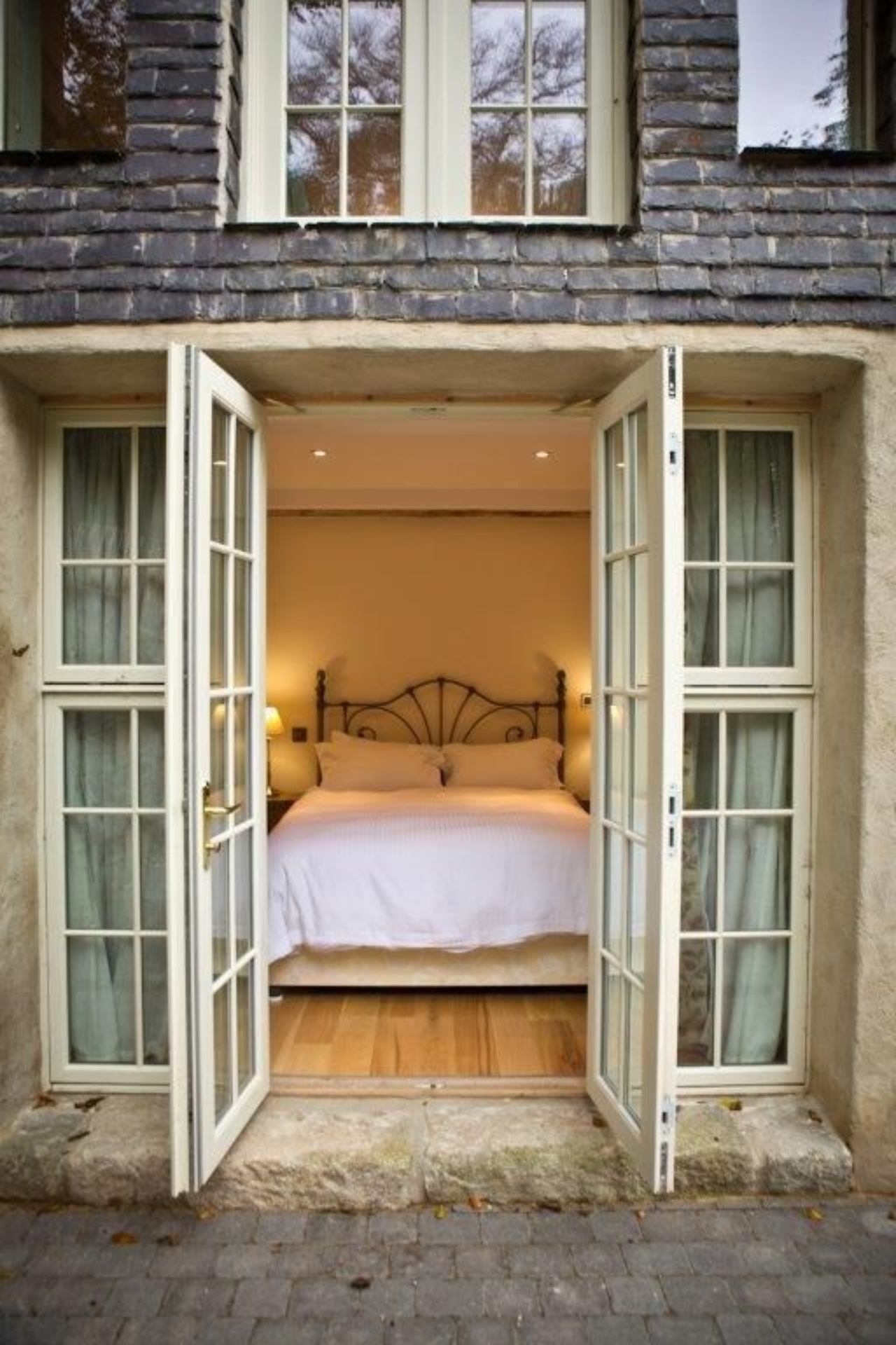 Bedroom 1: King size bed, built-in wardrobe, French windows which open onto a paved patio.