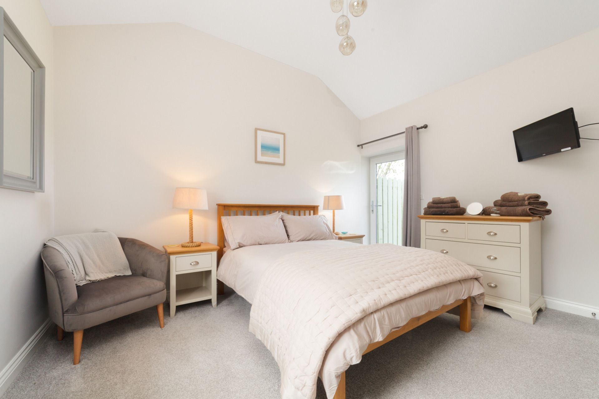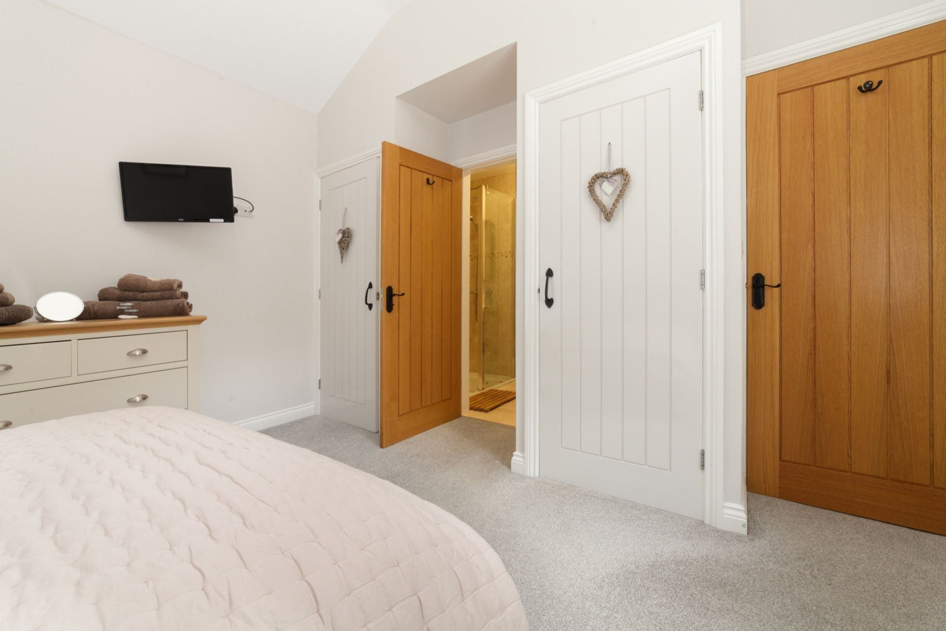Bedroom 1: King-size bed, chest of drawers, bedside cabinets, TV, wardrobe