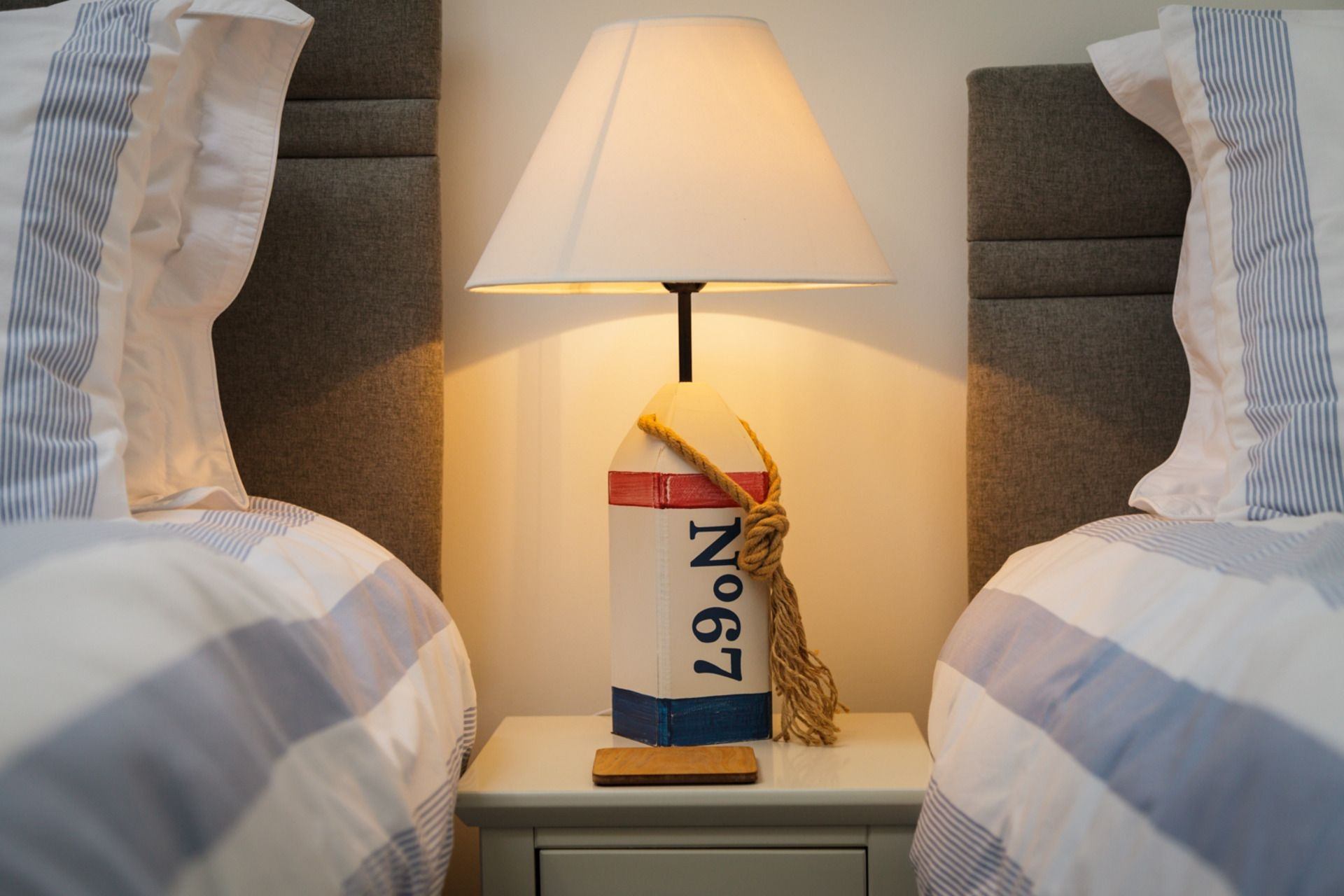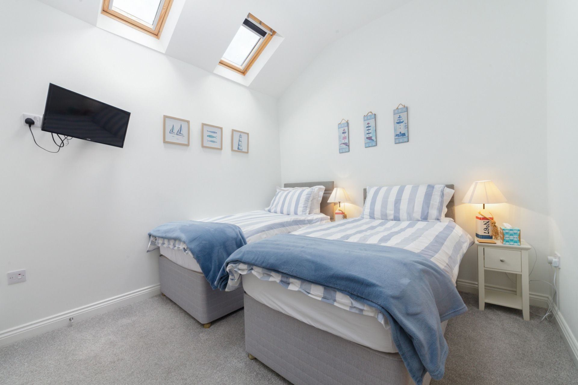Bedroom 2: Twin beds, bedside cabinets, TV