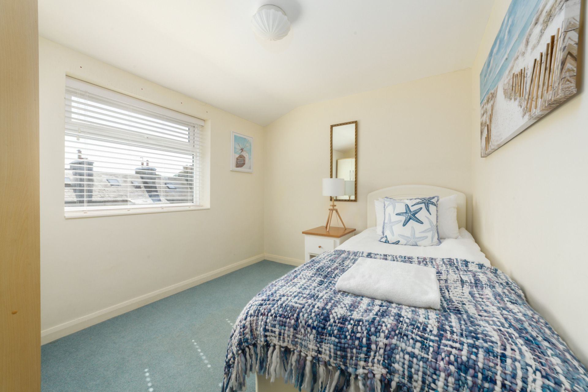 Bedroom 2: Single bed, bedside tables, wardrobe