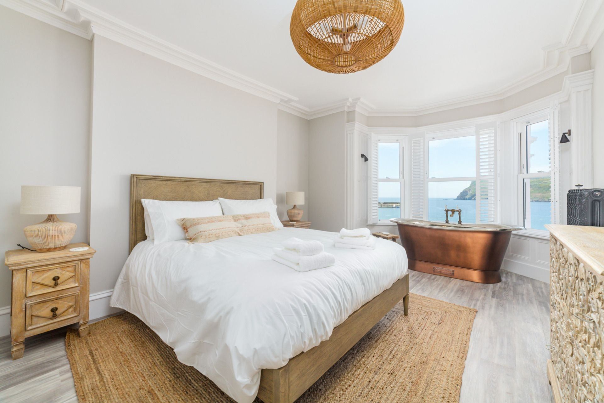 Bedroom 3: Super king size bed, ample storage space and a free-standing roll top bath.