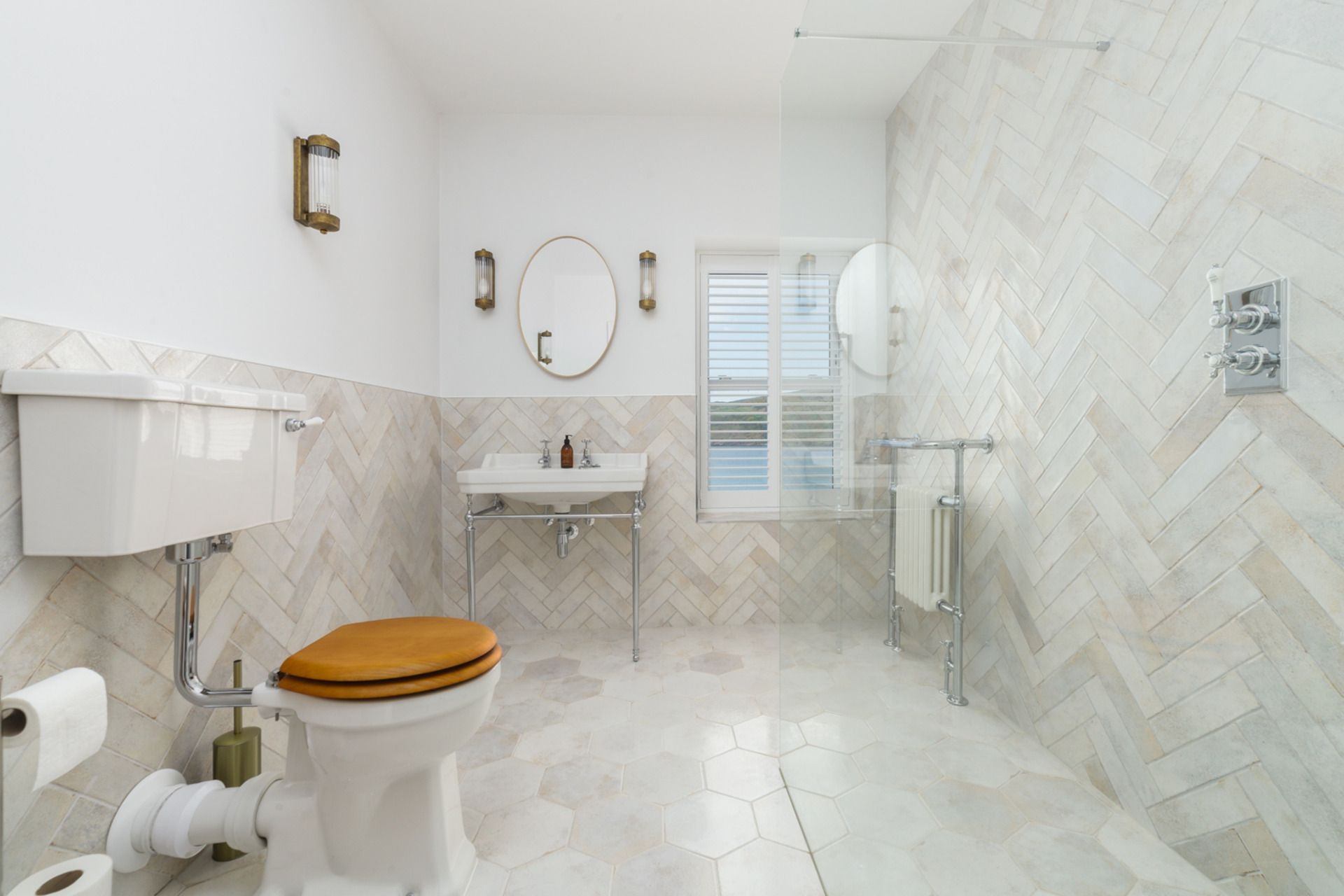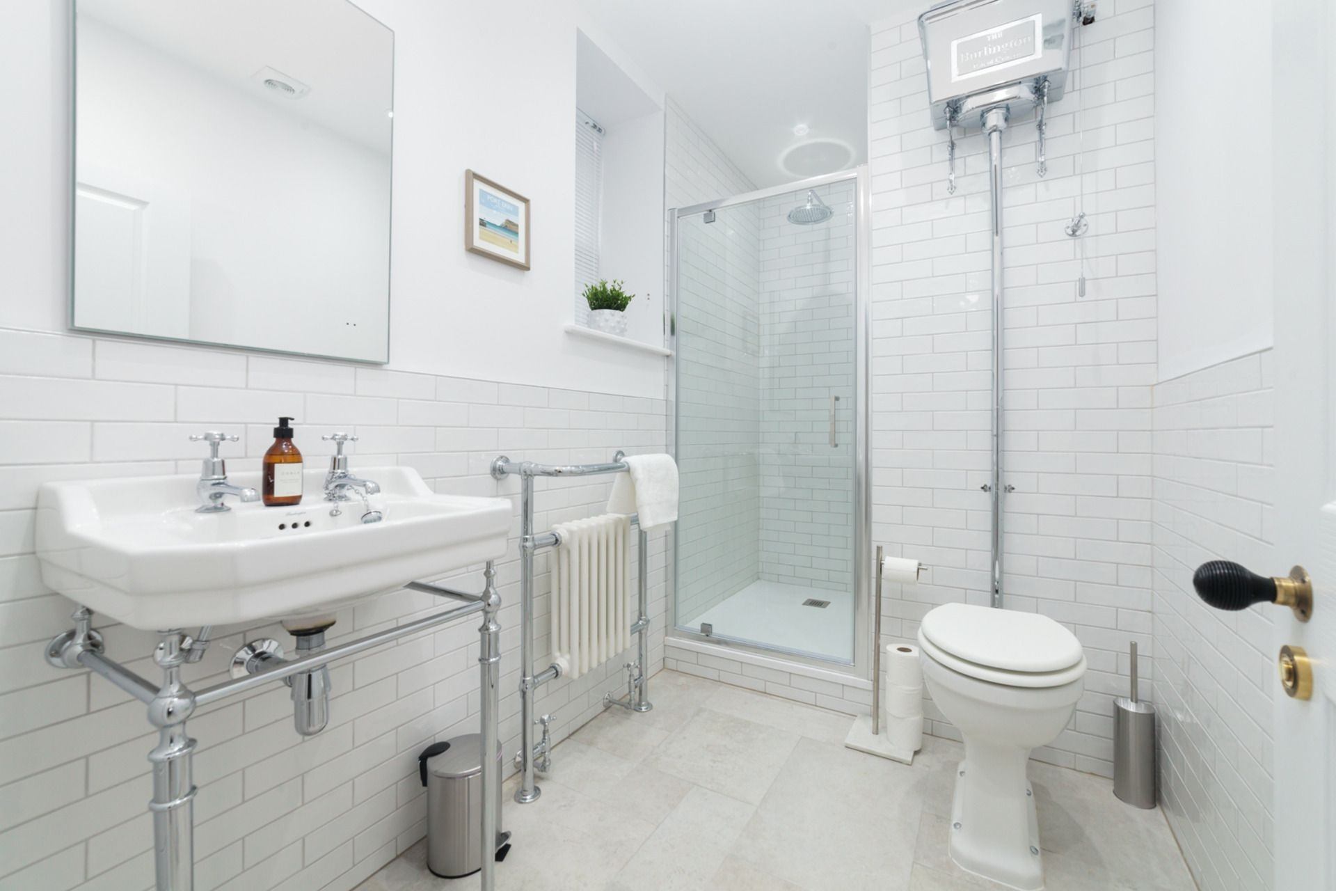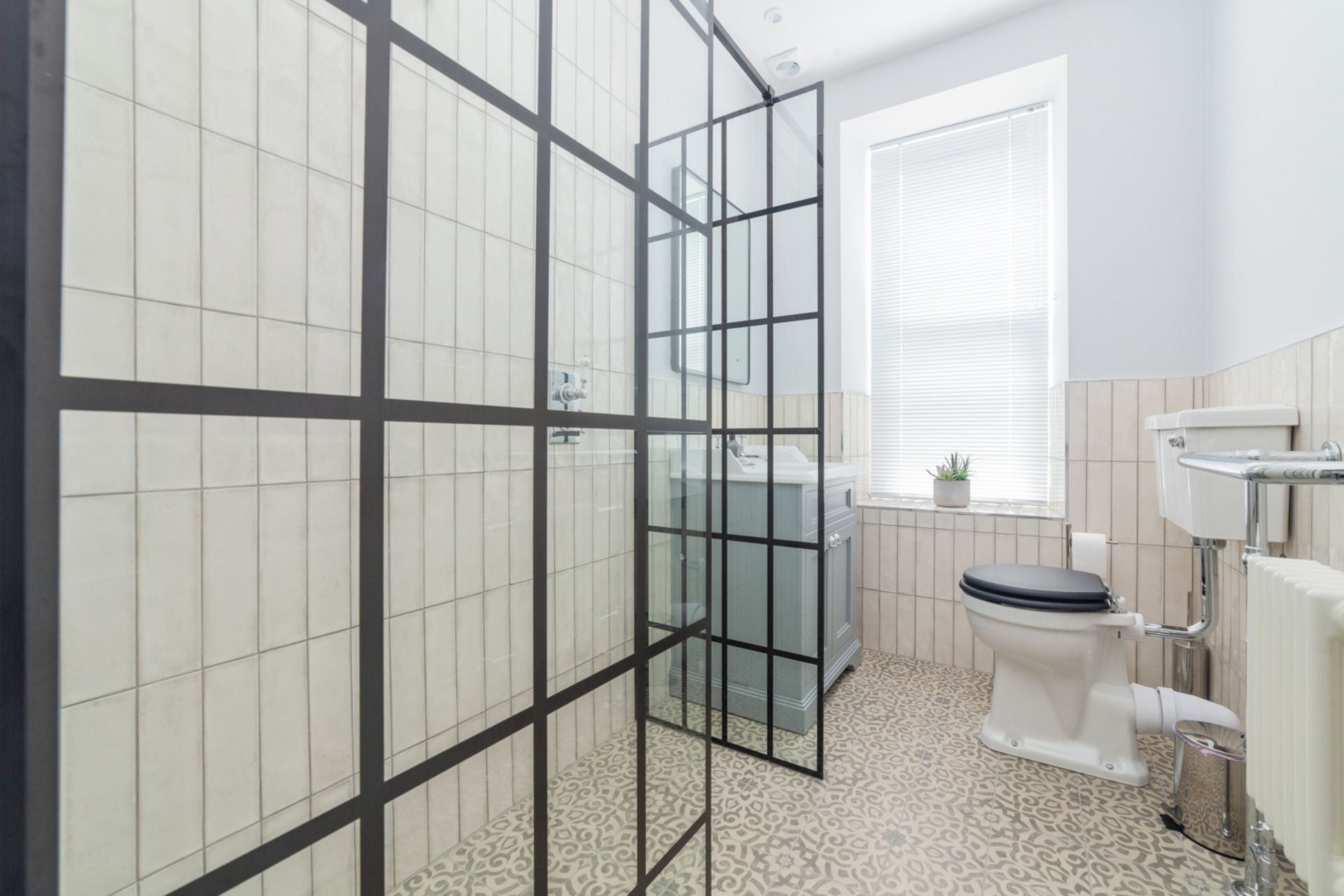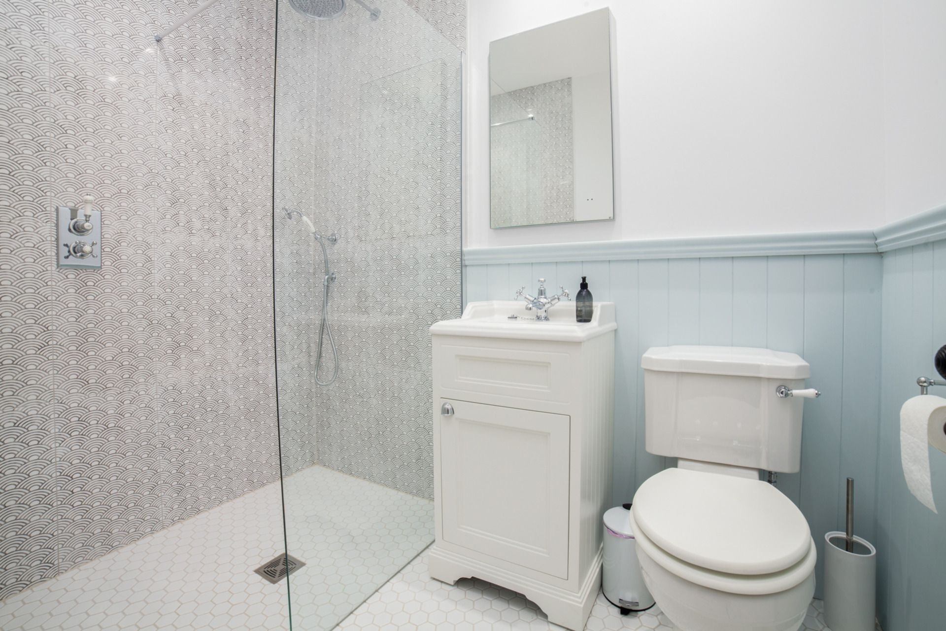 Bathroom: Shower, WC and wash hand basin.