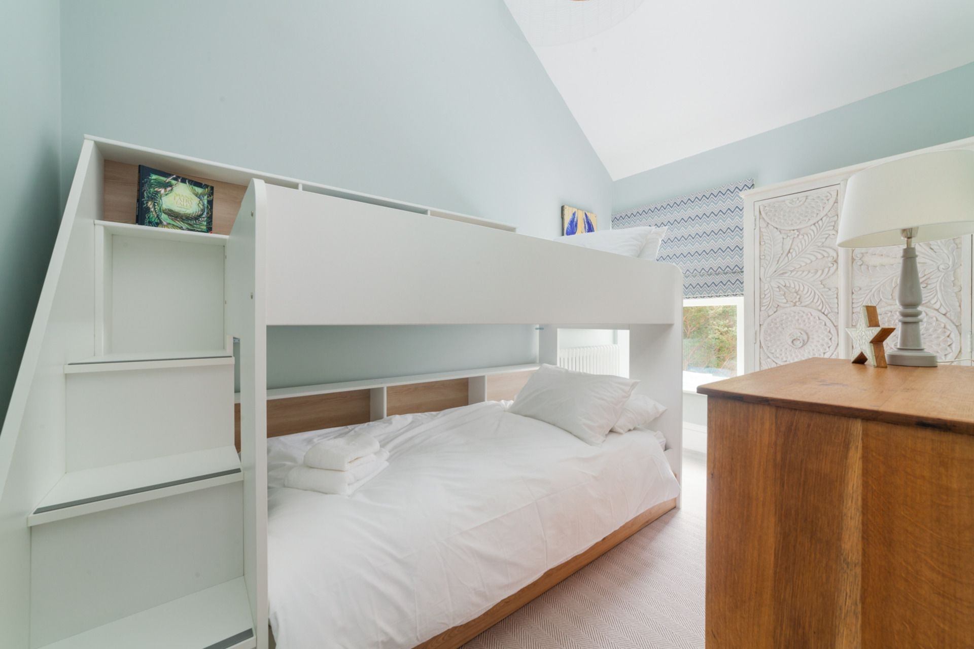 Bedroom 5: Bunk beds, wardrobe, chest of drawers.