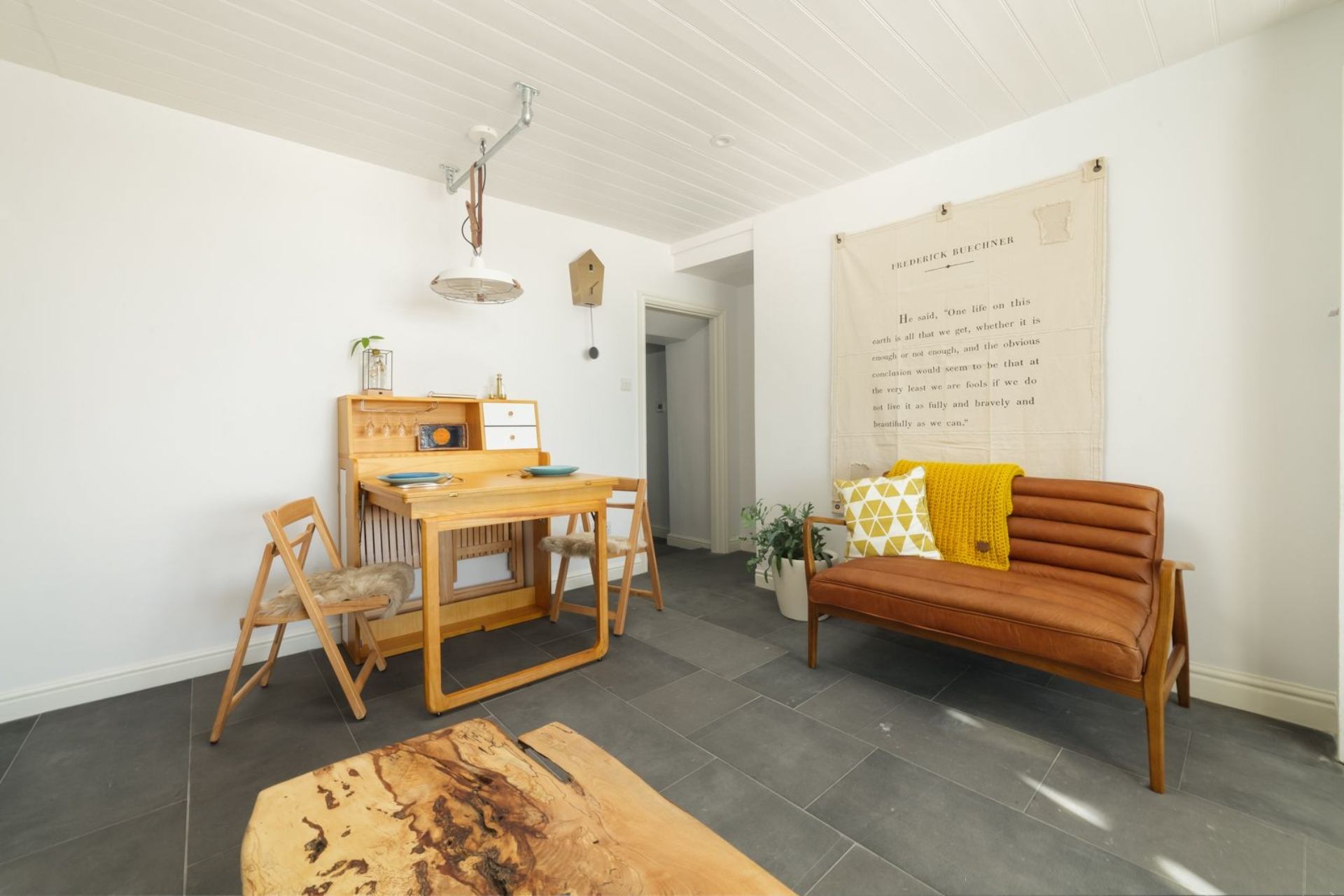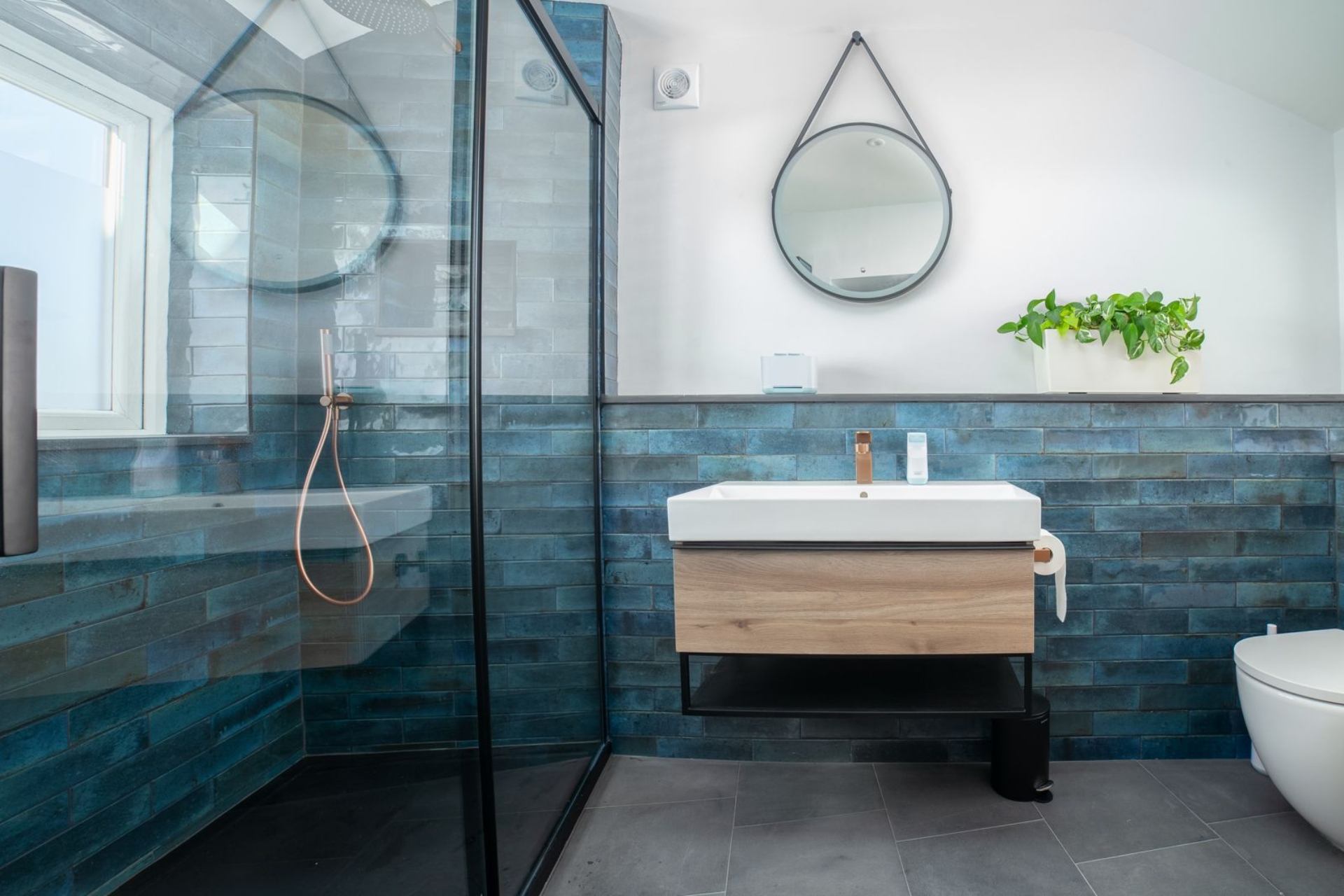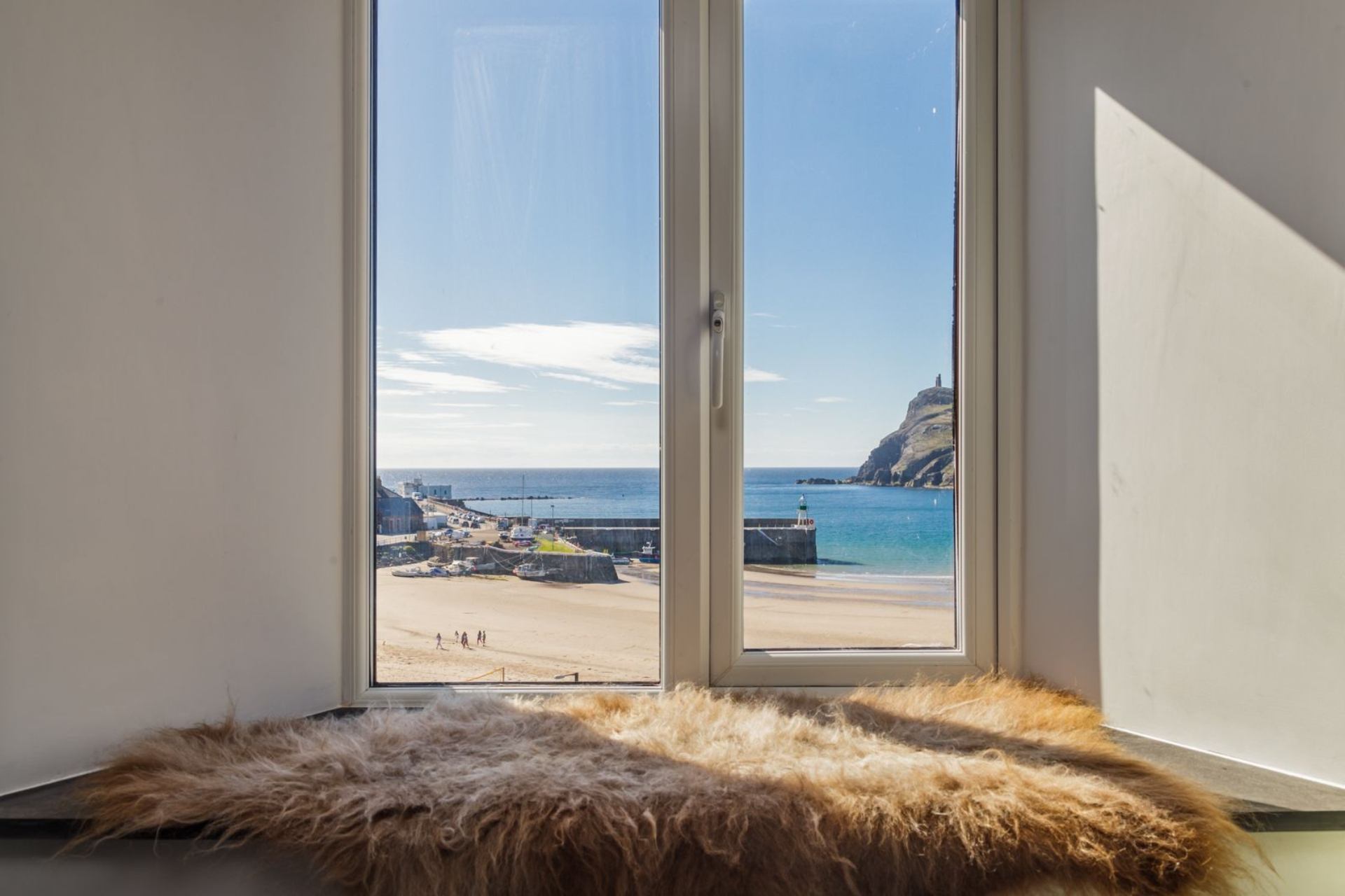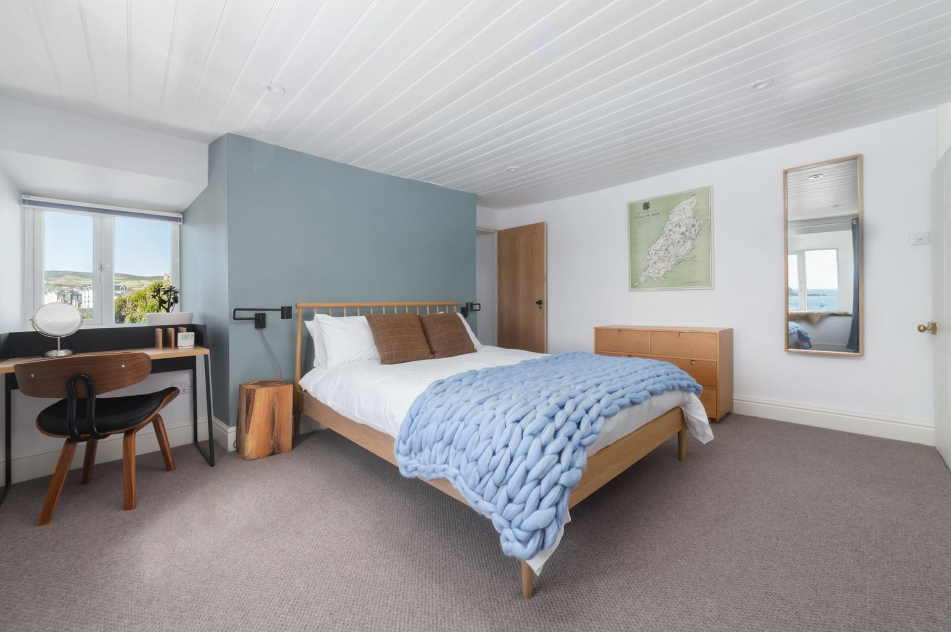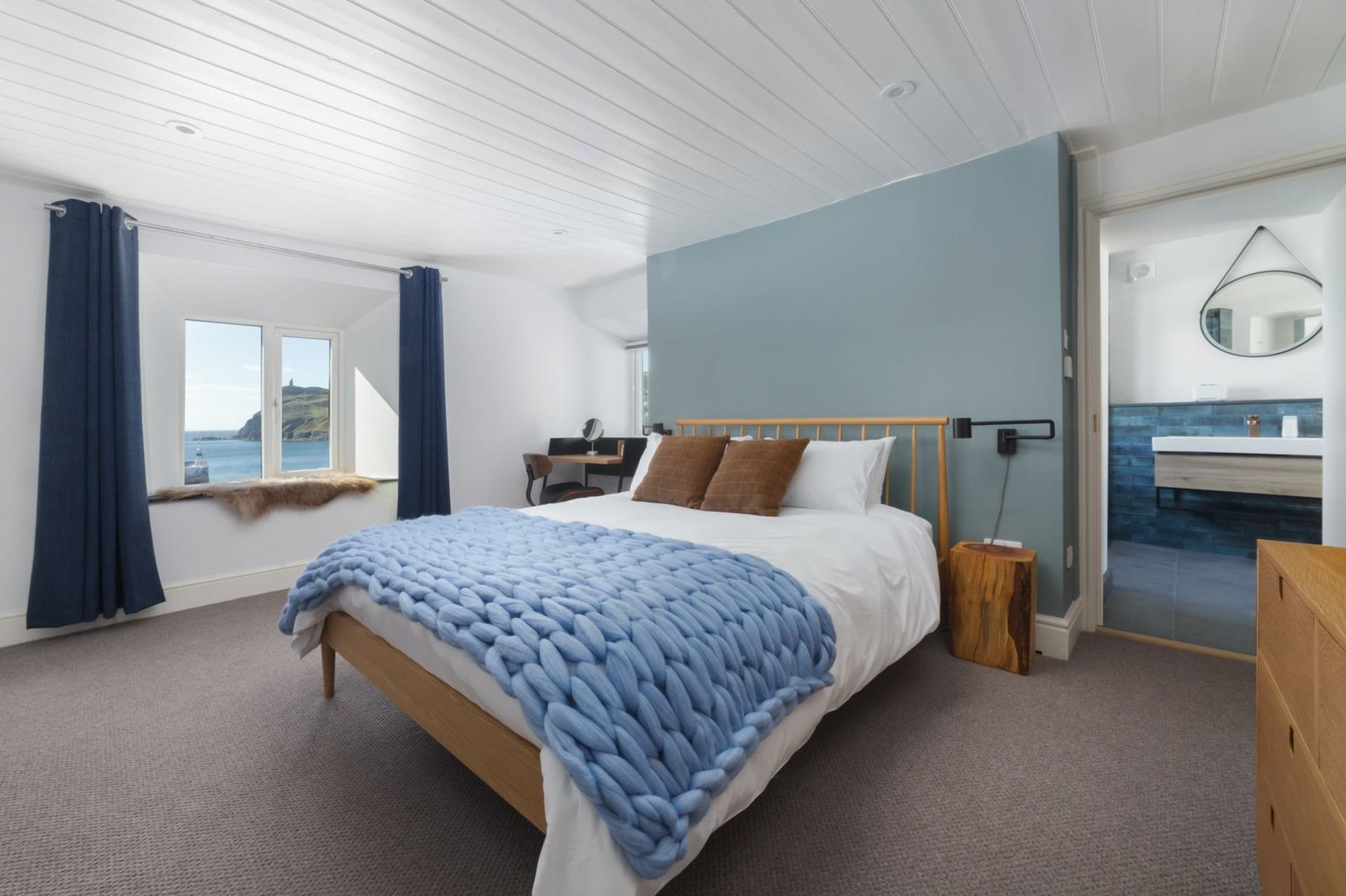 The Manx influence extends throughout the property, featuring soft furnishings made from local Loughton wool and Pooil Vaaish black limestone flooring embedded with fossils!