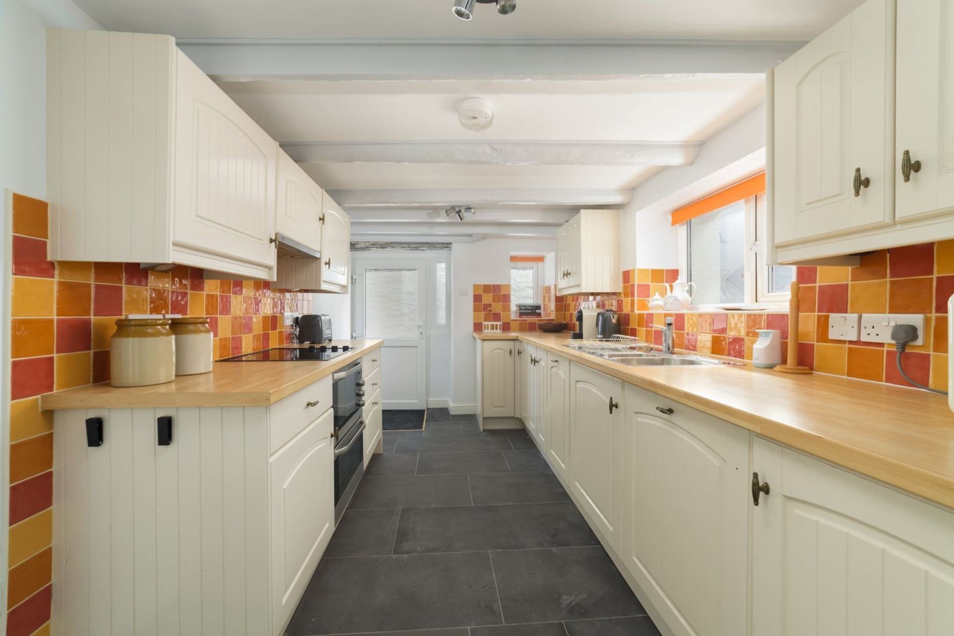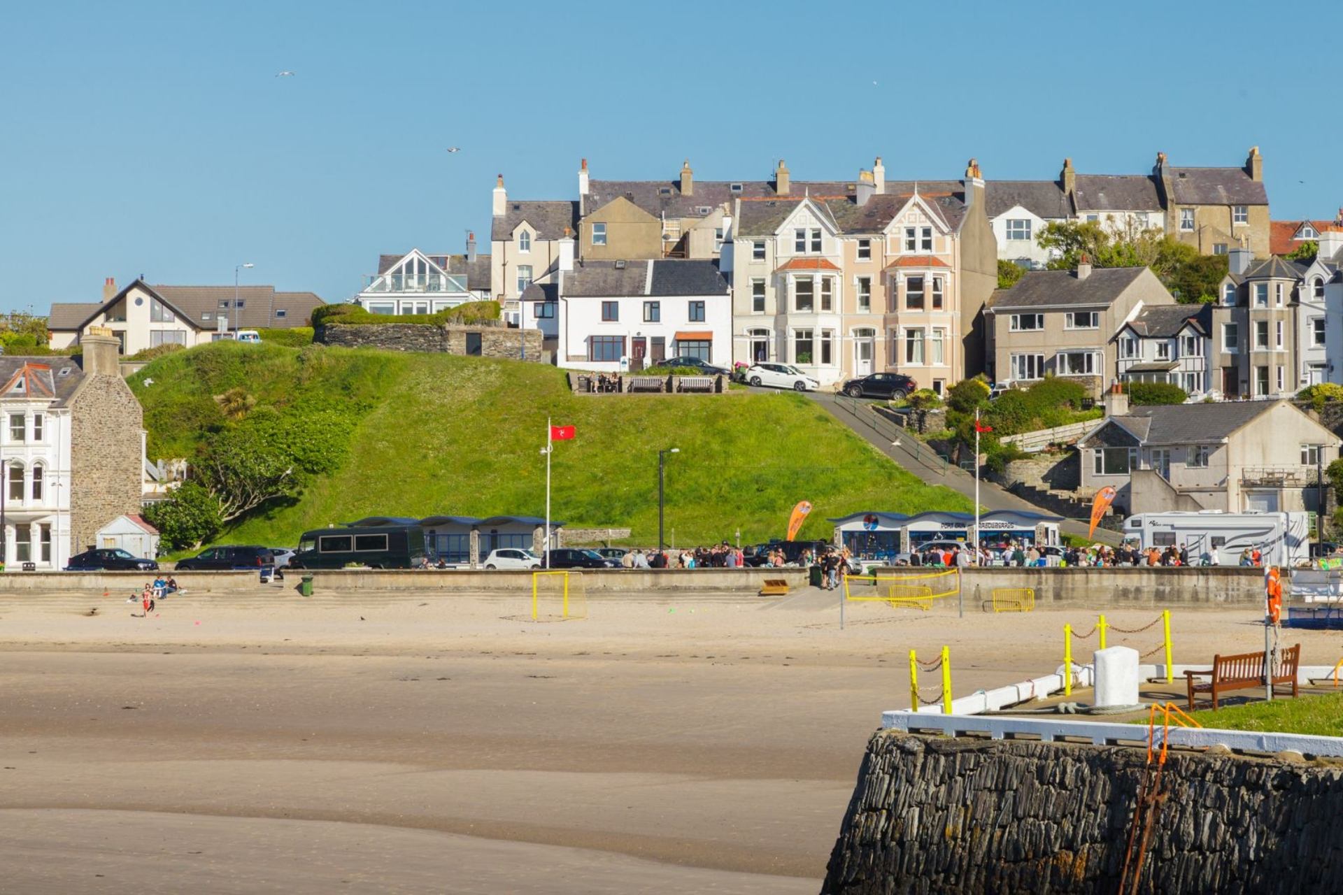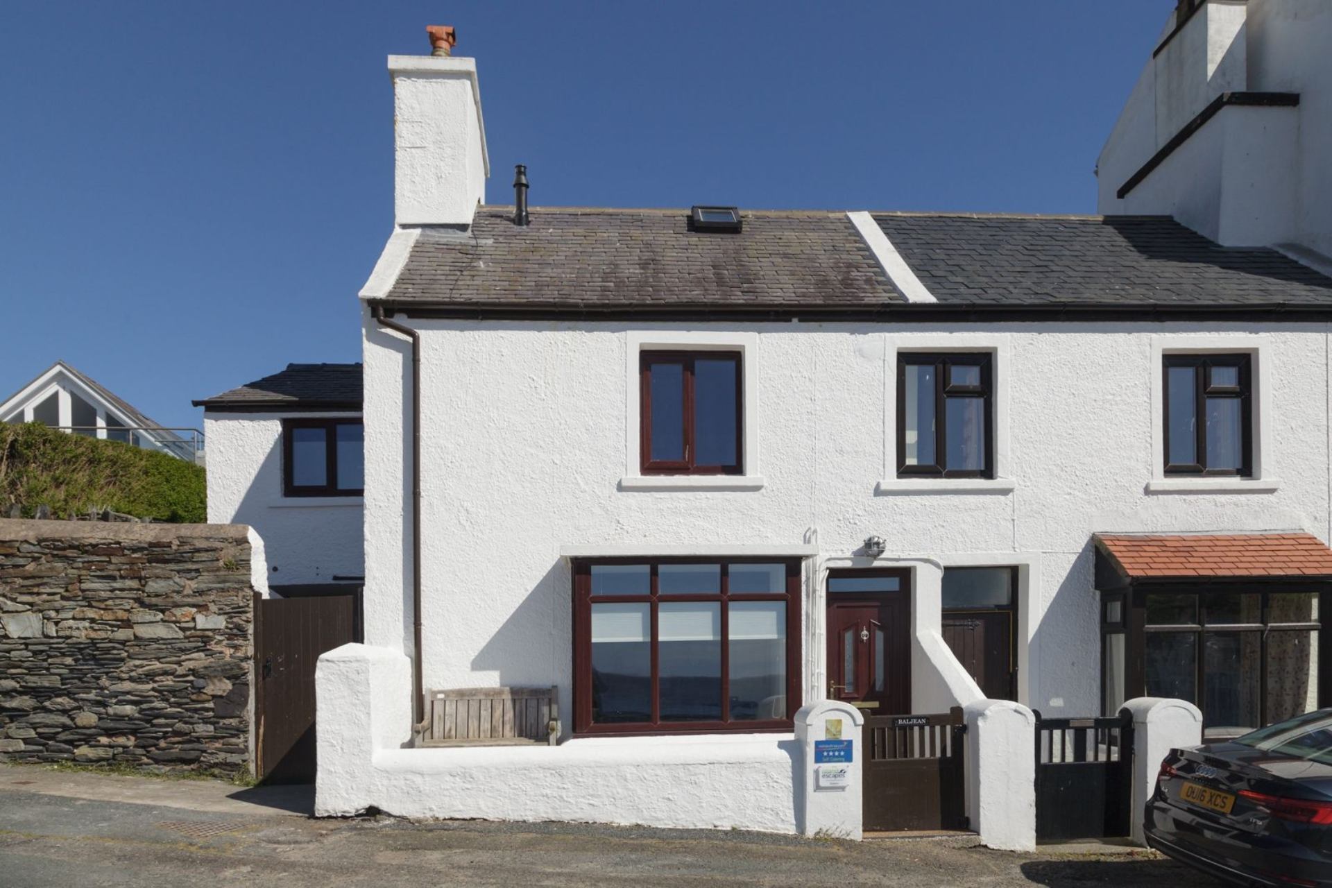 The living room has a magnificent Manx "Chiollagh" stone fireplace with wood burning stove, comfortable seating and a fold-out dining table seating up to four people. Kick back and relax on the chairs in the bay window of the living room which overlooks Port Erin bay and Bradda Head, often bustling with beachgoers in the summer months. The beach is a popular spot for dog walkers in the quieter months too! Baljean is pet friendly too, perfectly geared up to bring them with you as the property features a washroom with a basin around the side of the property.