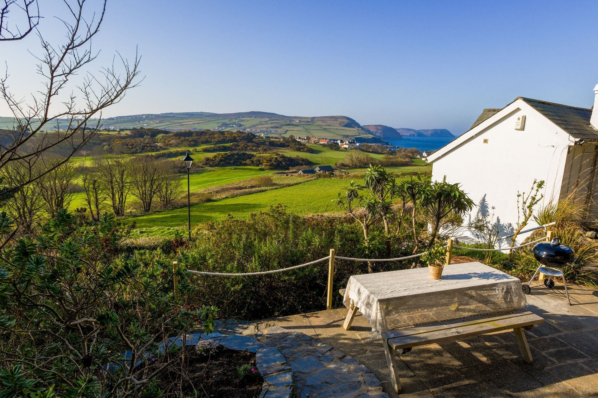 Superbly furnished property with idyllic tiered garden area, and panoramic views of two Isle of Man coasts.