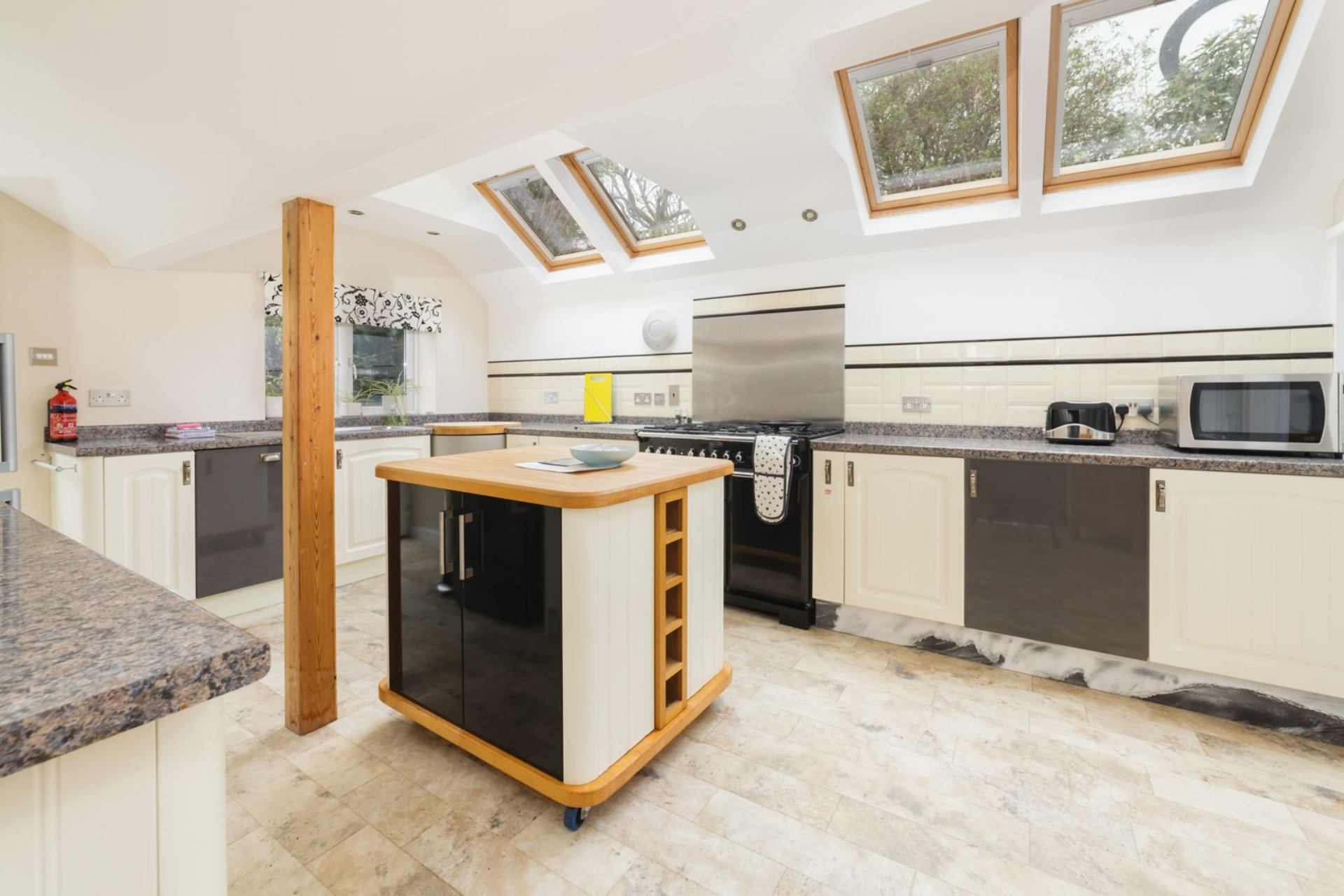 Kitchen Diner: Electric Oven, gas hob, fridge freezer, dishwasher, microwave, barista coffee machine, 6 person dining table with 2 bench seats
