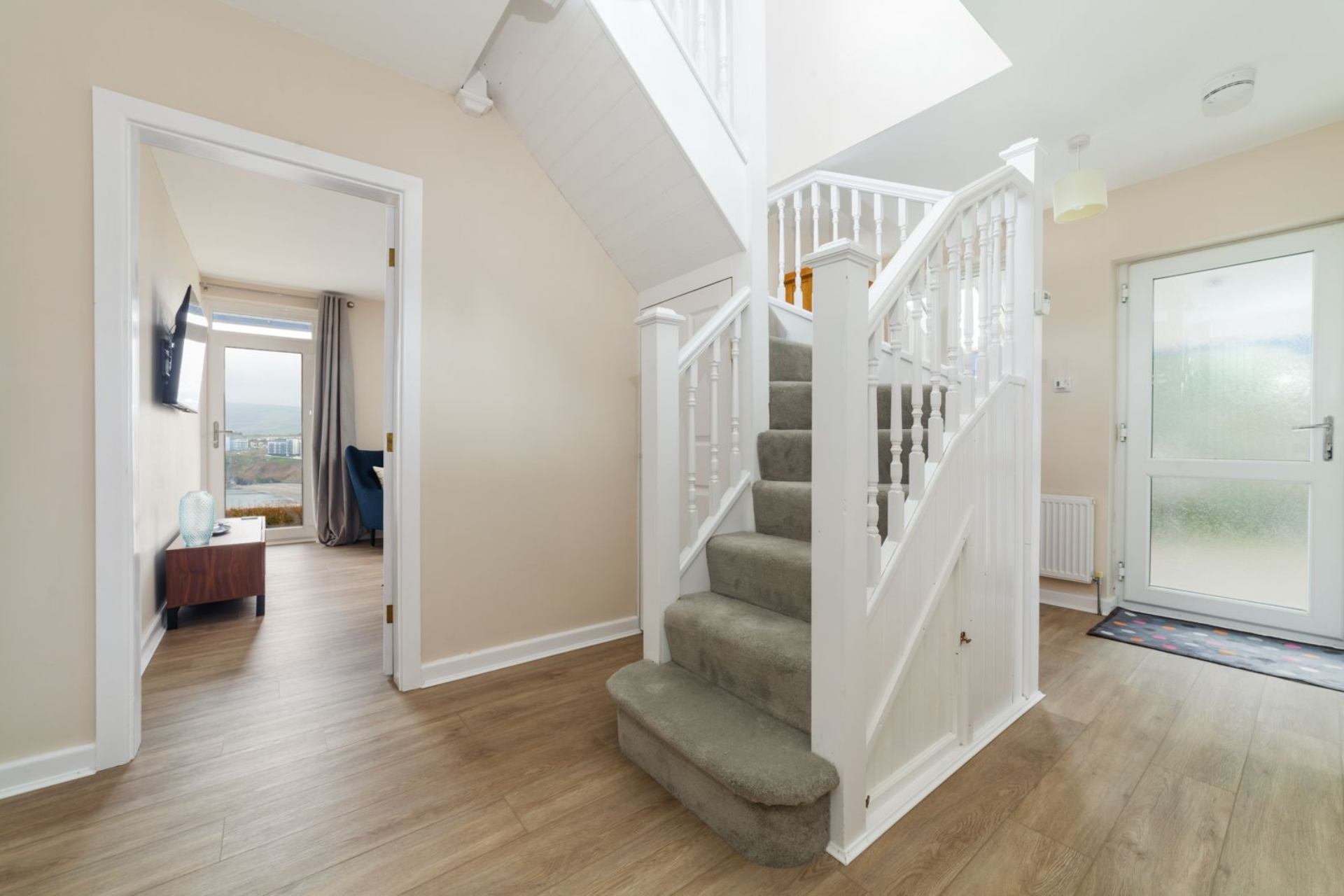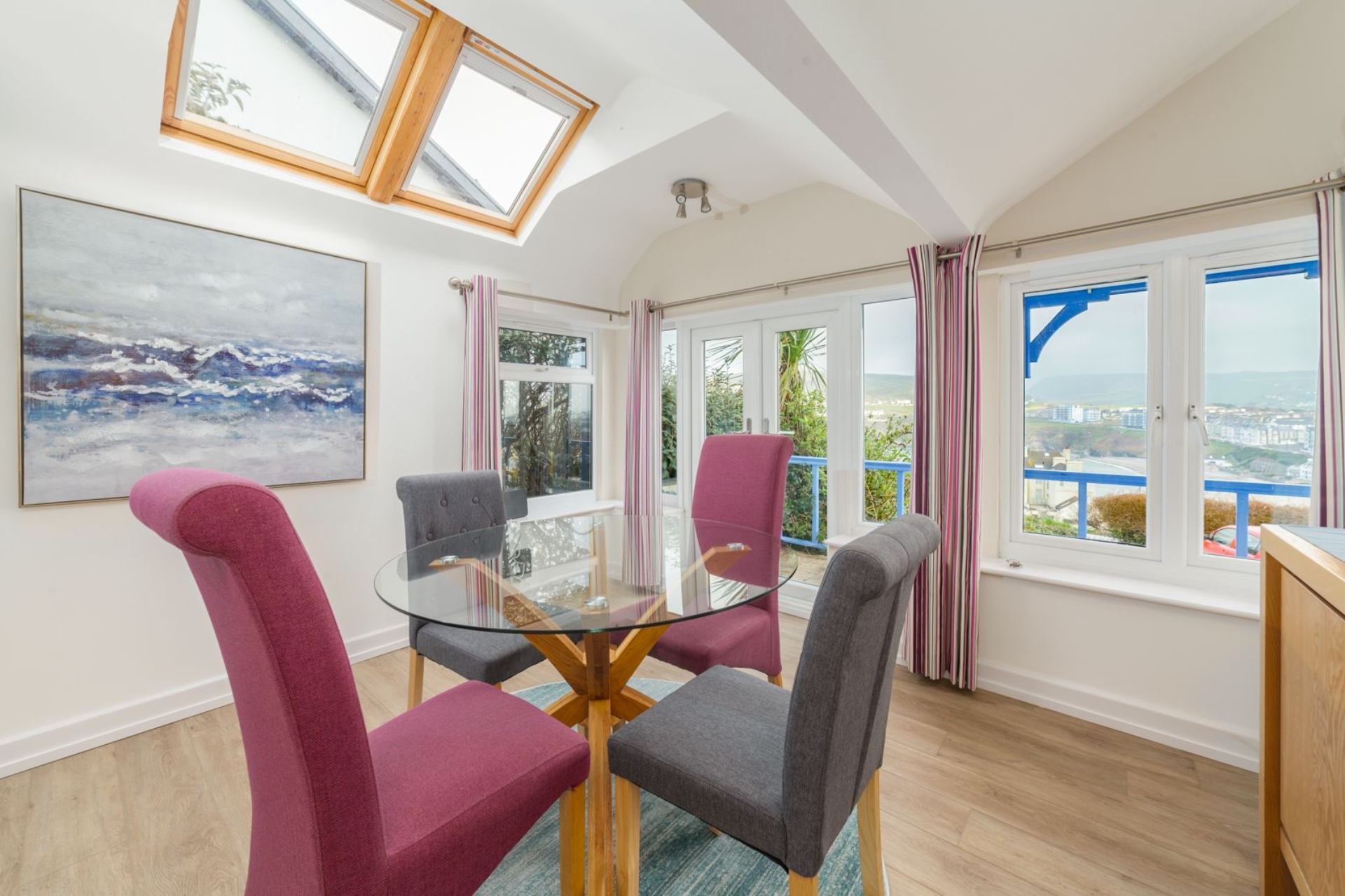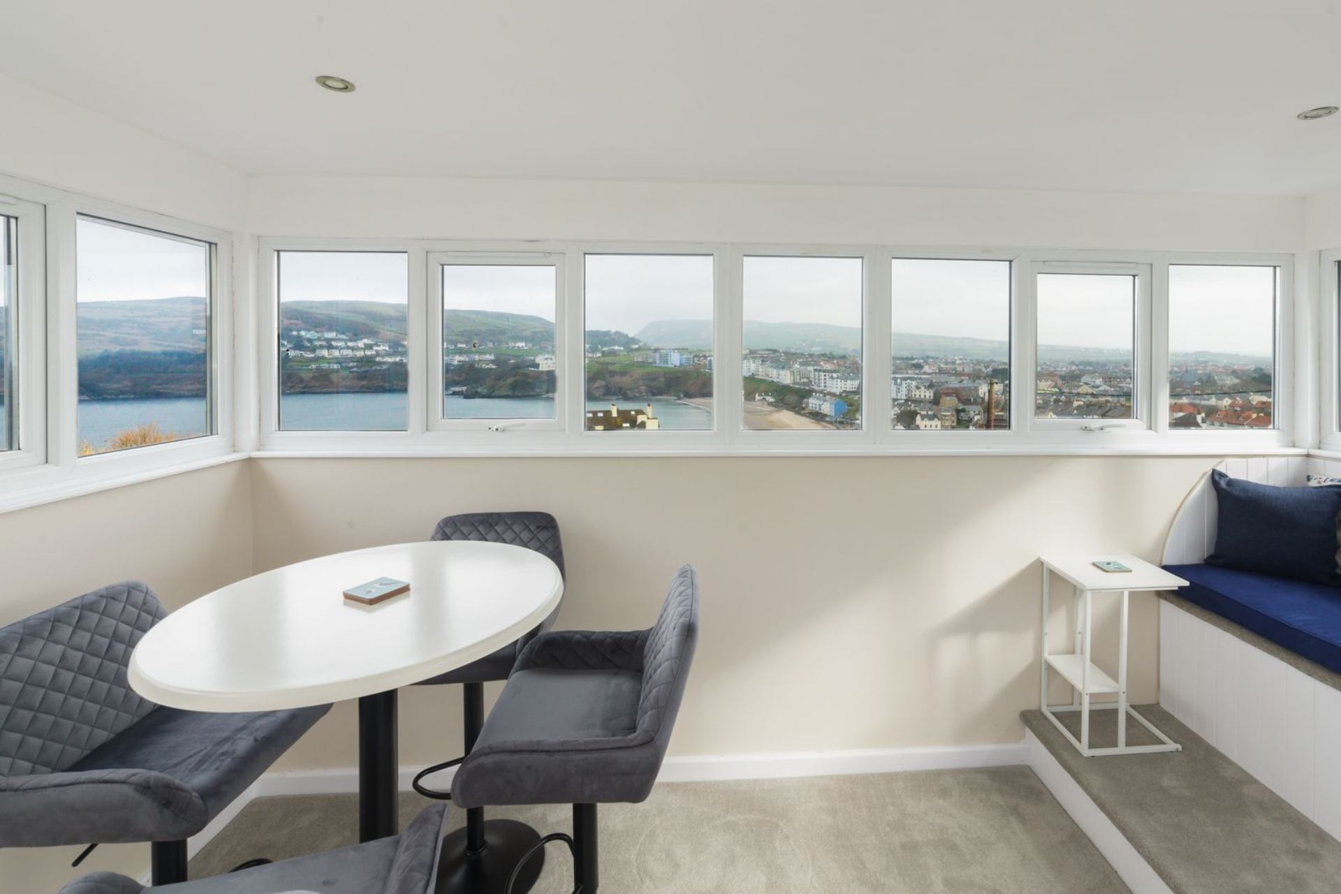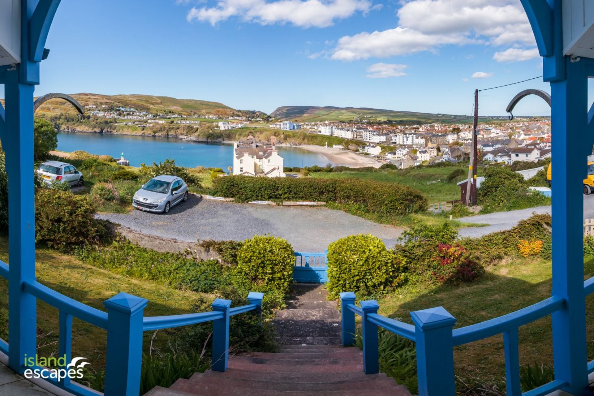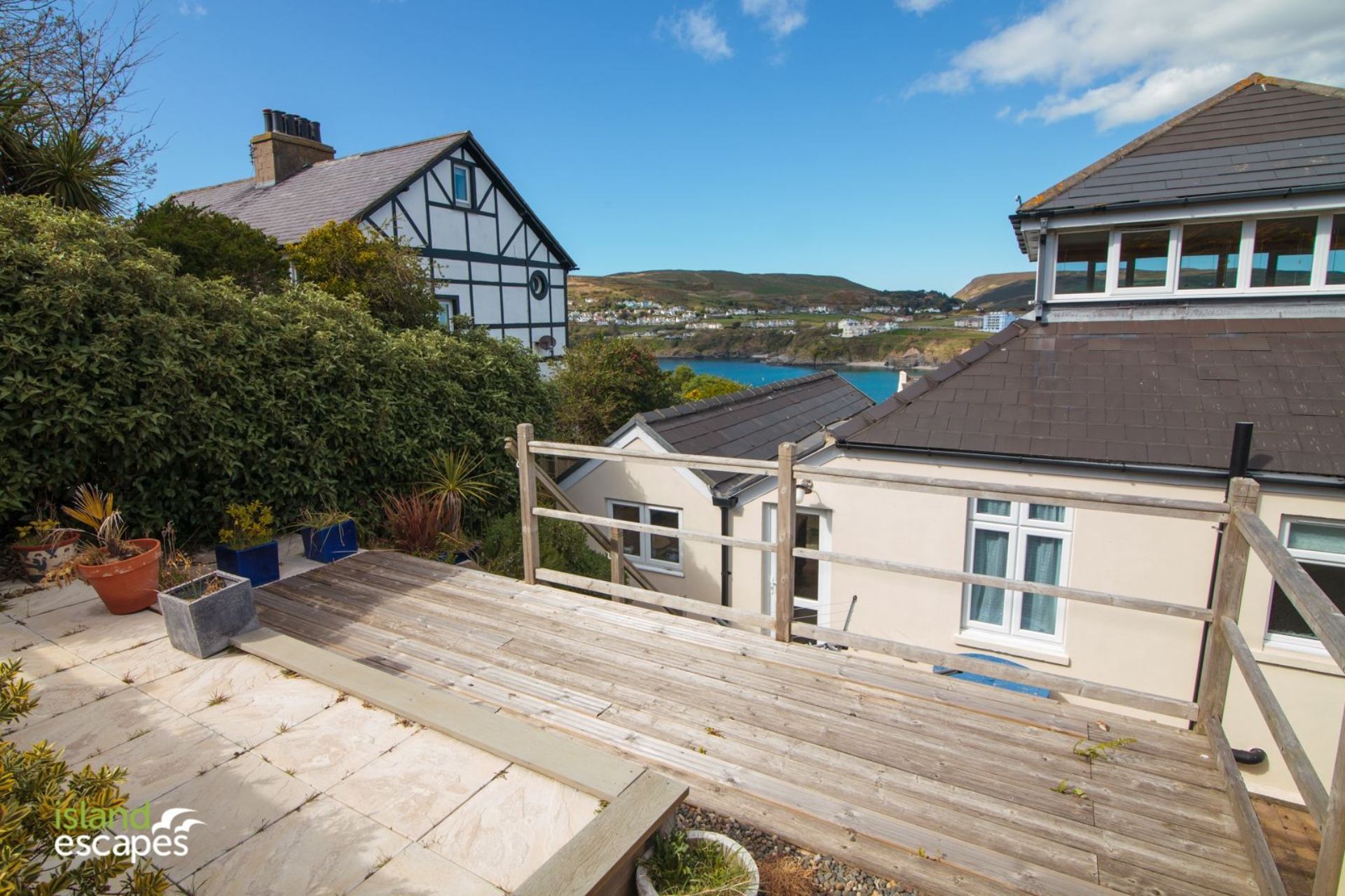 Upstairs, a bright 360 degree viewing lounge sits higher up in the house, offering sweeping panoramic views across the bay towards Bradda Head and out over the open sea. At the rear of the property you’ll find a private, sheltered sun terrace, an ideal place to enjoy a morning coffee or relax in the evening sea air. Parking is available just outside the house for up to 4 cars, and the property also benefits from its own private driveway.