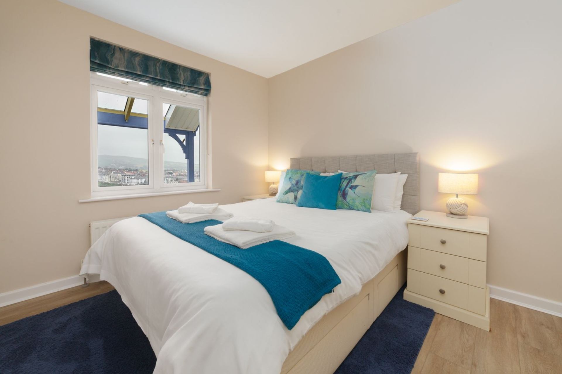Bedroom 2: Kingsize bed, bedside tables with lamps, large wardrobe with draws, mirror, TV