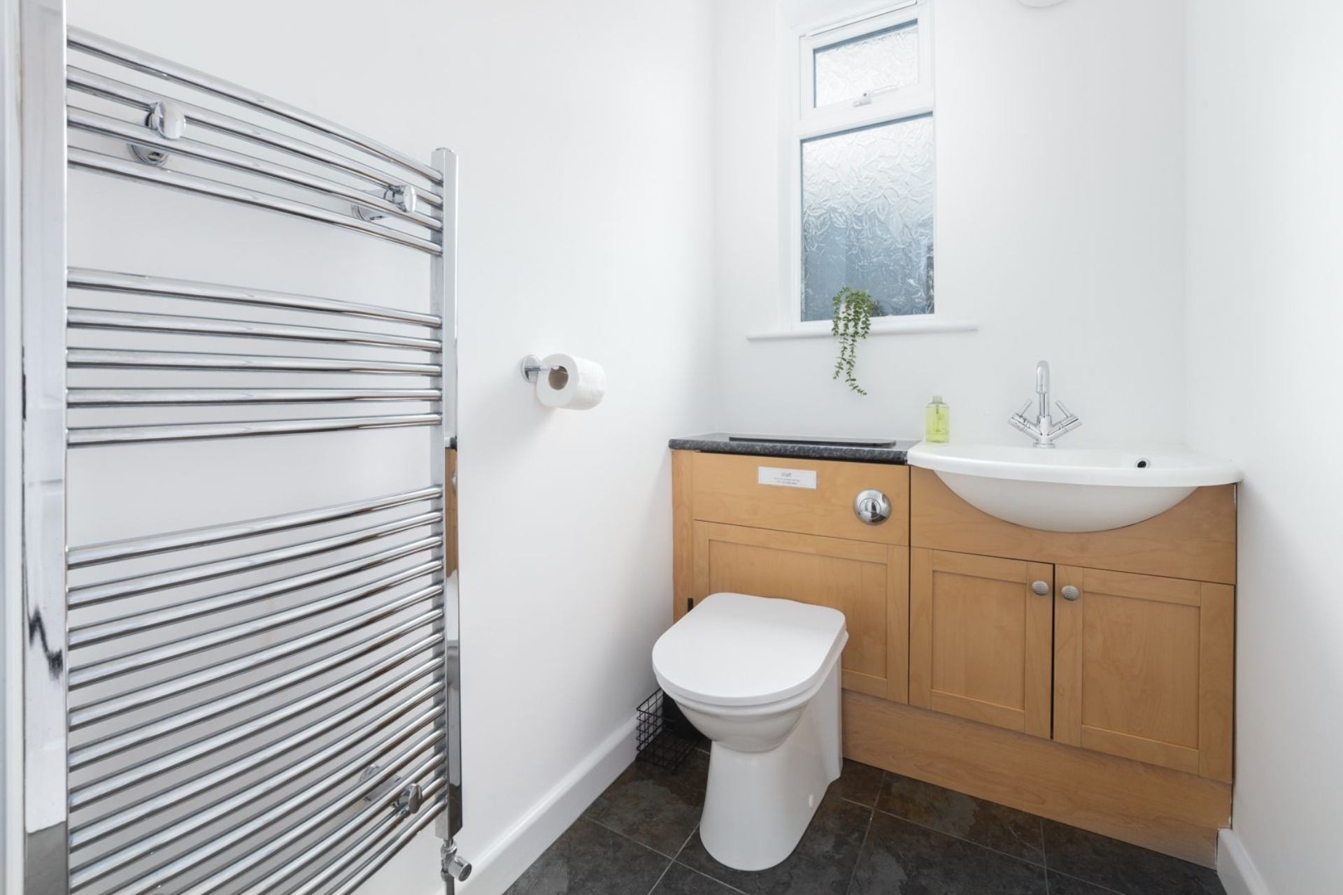 Family Bathroom: Walk in shower, WC, hand basin and mirror