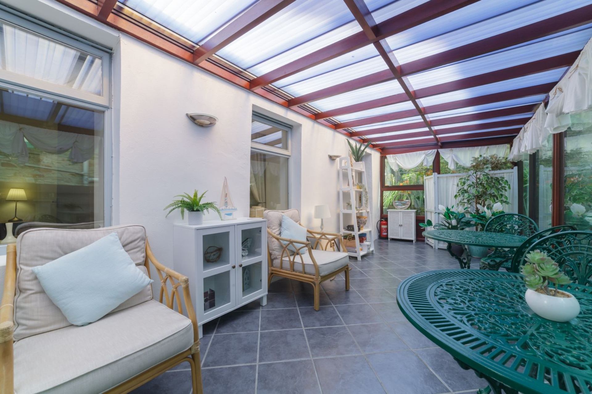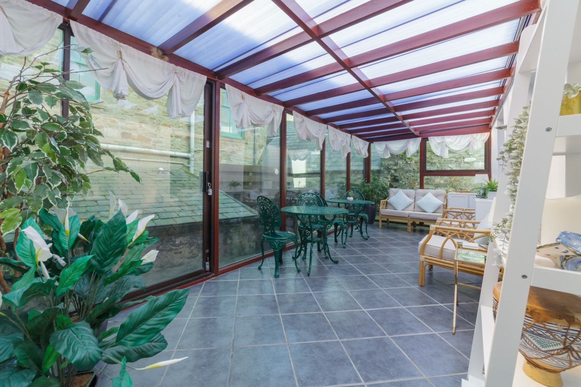 Conservatory: Spacious and complete with both comfortable chairs, also dining chairs and tables.