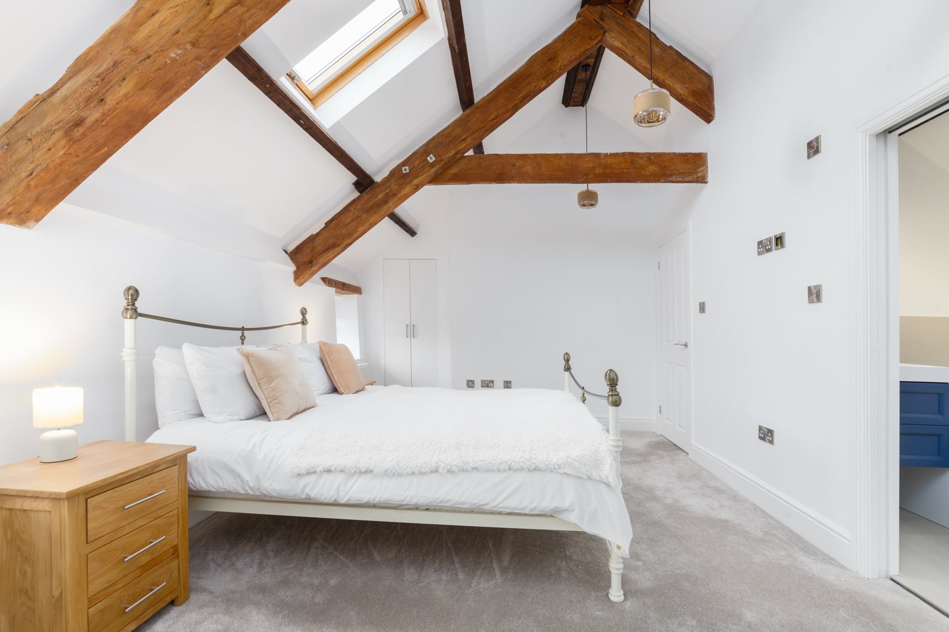 En-suite bathroom: Walk-in shower with rainfall head, WC, heated towel rail and hand wash basin.